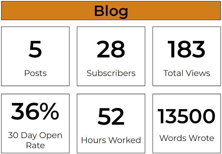 Overall, it was a decent month for achieving blog goals (like a 6/10), but there are always things to improve: