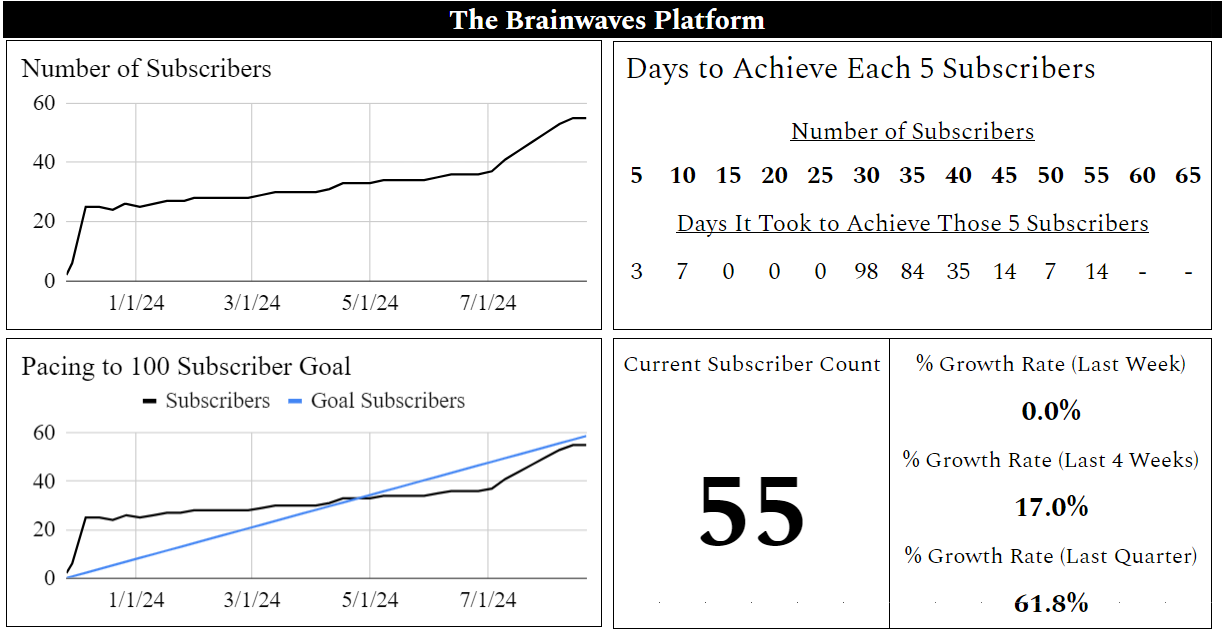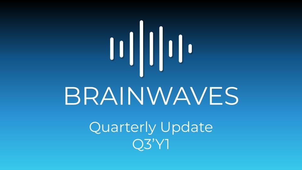 Welcome to the quarterly update for the Brainwaves platform. As another quarter draws to a close, I’m pleased to present our comprehensive update. In the following, I’ll walk through quarterly highlights, discussing successes, obstacles overcome, and the exciting opportunities that lie ahead. I’ve built this platform on the value of transparency, so I’ve compiled this piece to give you a clear picture of where we currently stand and where we’re headed.