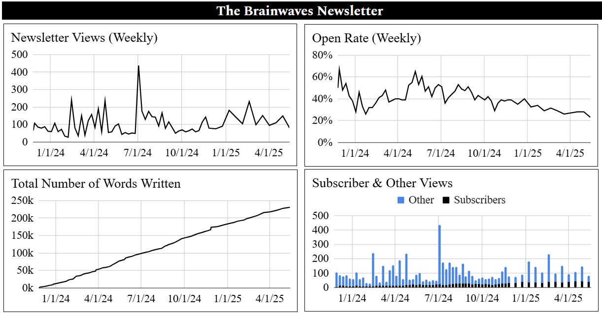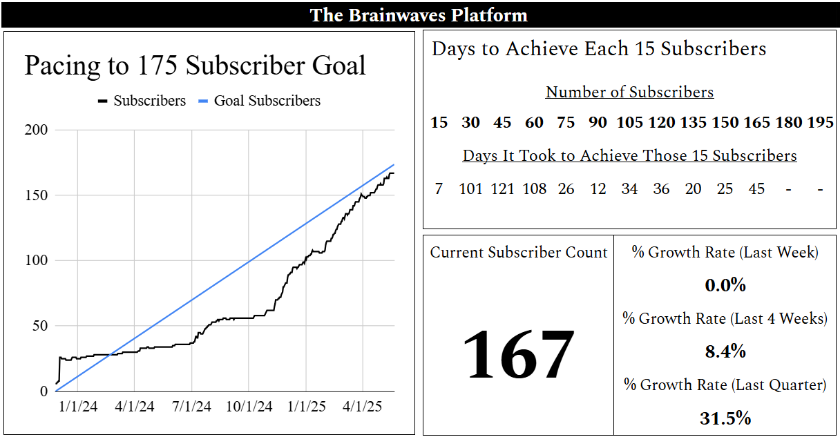 Welcome to the quarterly update for the Brainwaves platform. As another quarter draws to a close, I’m pleased to present our comprehensive update. In the following, I’ll walk through quarterly highlights, discussing successes, obstacles overcome, and the exciting opportunities that lie ahead. I built this platform based on the value of transparency, so I’ve compiled this piece to give you a clear picture of where we currently stand and where we’re headed.