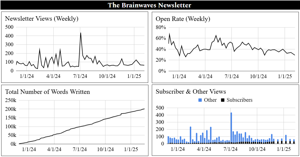 Welcome to the quarterly update for the Brainwaves platform. As another quarter draws to a close, I’m pleased to present our comprehensive update. In the following, I’ll walk through quarterly highlights, discussing successes, obstacles overcome, and the exciting opportunities that lie ahead. I built this platform based on the value of transparency, so I’ve compiled this piece to give you a clear picture of where we currently stand and where we’re headed.