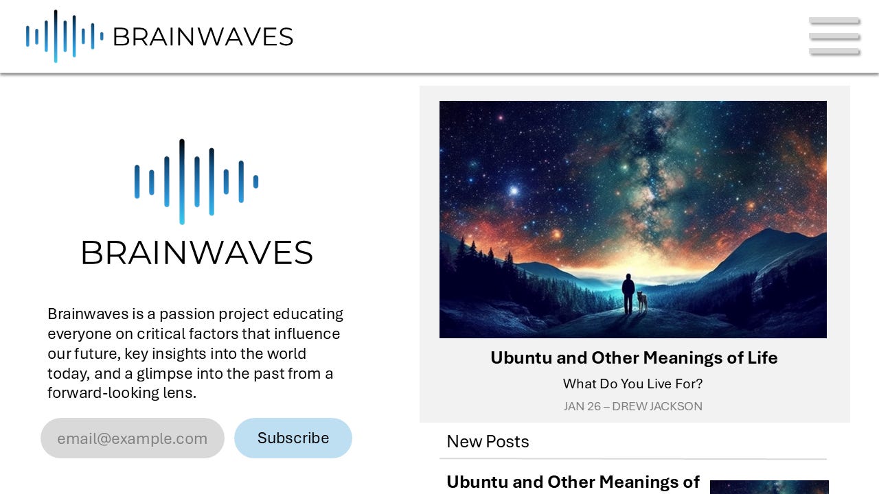Brainwaves is a passion project educating everyone on critical topics that influence our future, key insights into the world today, and a glimpse into the past from a forward-looking lens.