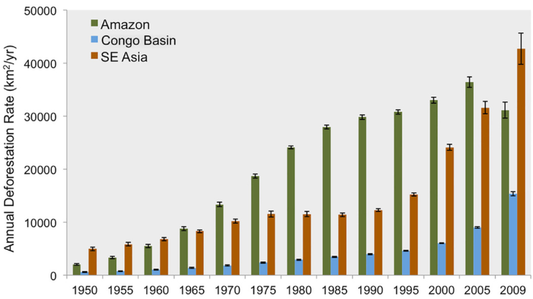 After a brief decrease, illegal deforestation efforts increased in 2015 as the demand for products like palm oil and soy dramatically increased.