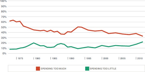 However, the support was far from unanimous. You can see in survey results from the General Social Survey by the National Academies of Sciences that a large portion of Americans surveyed believed that we were spending too much on space during this time: