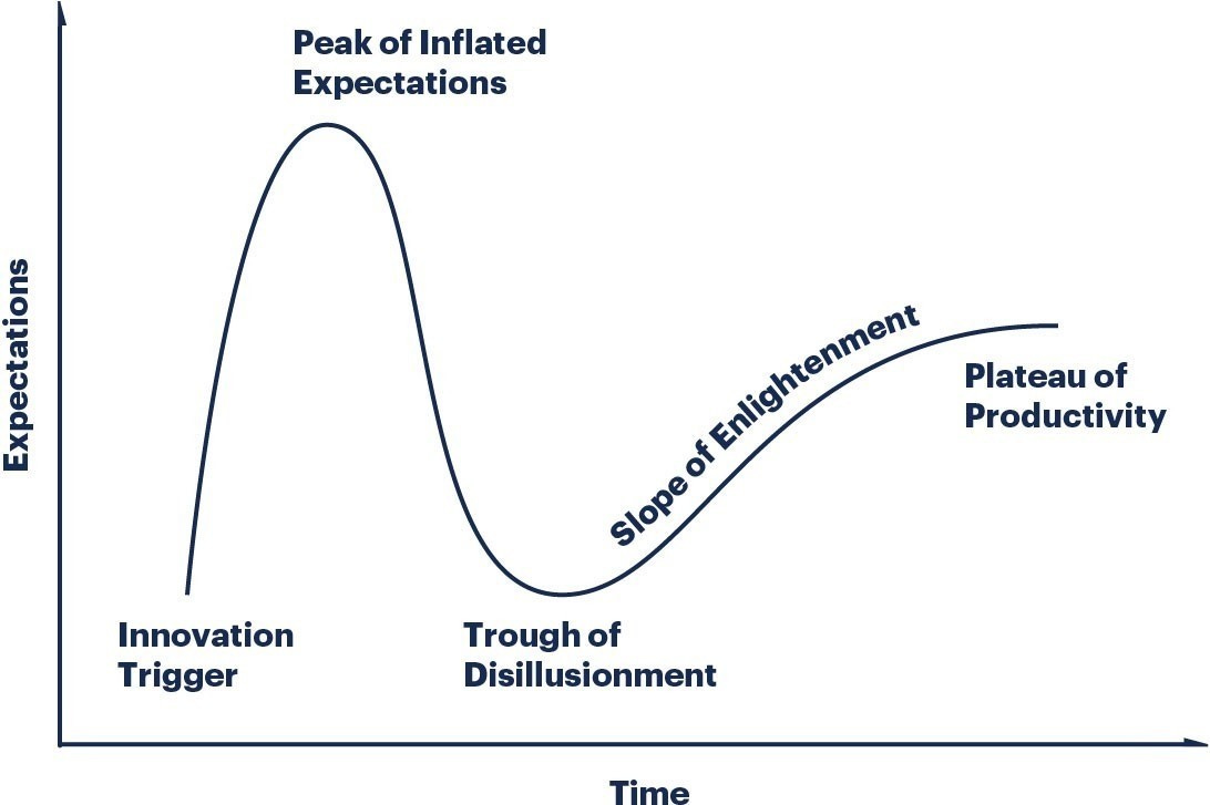 If you’ve been around the business world at all in the last decade or two, you’ve probably seen a hype cycle graph like shown below.