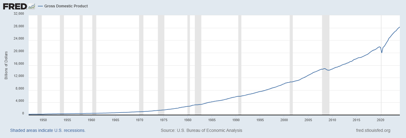 The total value of United States currency (dollars) in circulation currently is around $2.26T. Yet the United States GDP is around $25.44T. It’s infinitely more complicated than this in practicality, but for our theoretical purposes, this would mean each dollar gets spent approximately 11.25 times over the course of a year.