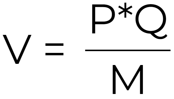 The idea of this equation is that the number of goods and services in an economy multiplied by the average price is roughly equal to the GDP of that economy. Dividing GDP by the money in circulation in that economy produces money velocity.
