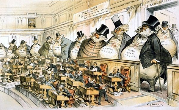 Why don’t we have more monopoly laws now in the United States? Don’t we have monopolies that are exerting potentially undue influence on markets and consumers?