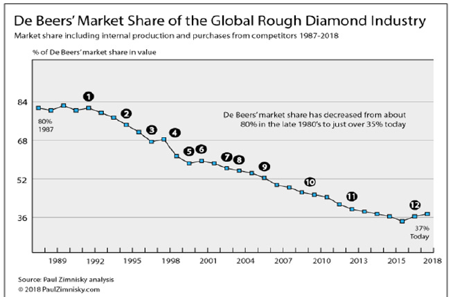 This enabled them to extract extremely high prices and essentially control global access to diamonds (which is one of the reasons why diamonds were so expensive for so long).