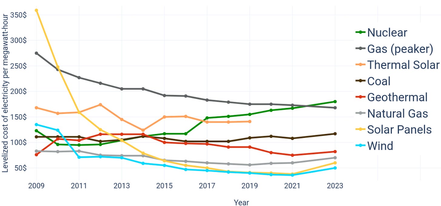 As you can see, nuclear power is now the most expensive type of energy out there.