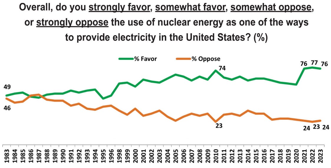 As you can see, overall, the American public perception of nuclear power is positive, to say the least.