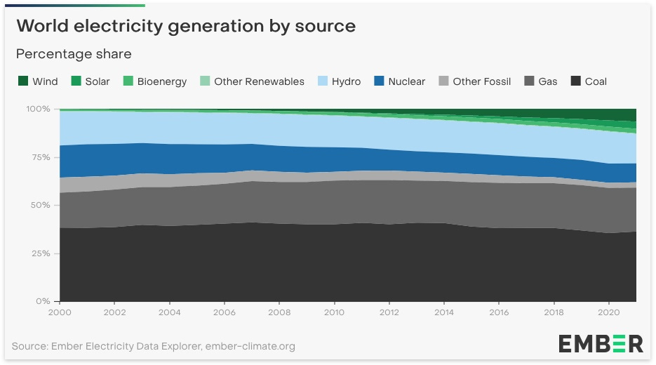 Thesis: As the world transitions away from fossil fuels, the solution seems to be nuclear and/or renewable energy sources. Renewables are easily taking most of the share of new energy, which, from a cost, safety, expertise, and feasibility standpoint, seems like the proper course of action.