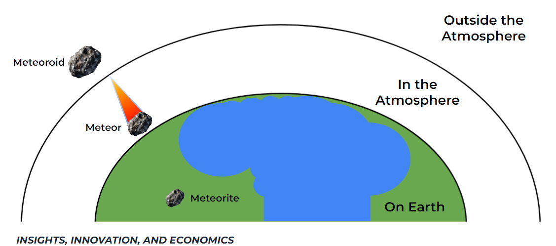 To be clear, here’s the breakdown of singular space rock. When it’s outside our atmosphere, it’s considered a meteoroid. When it is inside our atmosphere, but not yet on the surface, it is a meteor. And when it is on the surface, it is a meteorite.