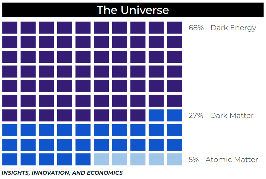 As you can see, “space” makes up around 95% of the universe, with various forms of atomic matter making up the remaining 5%.