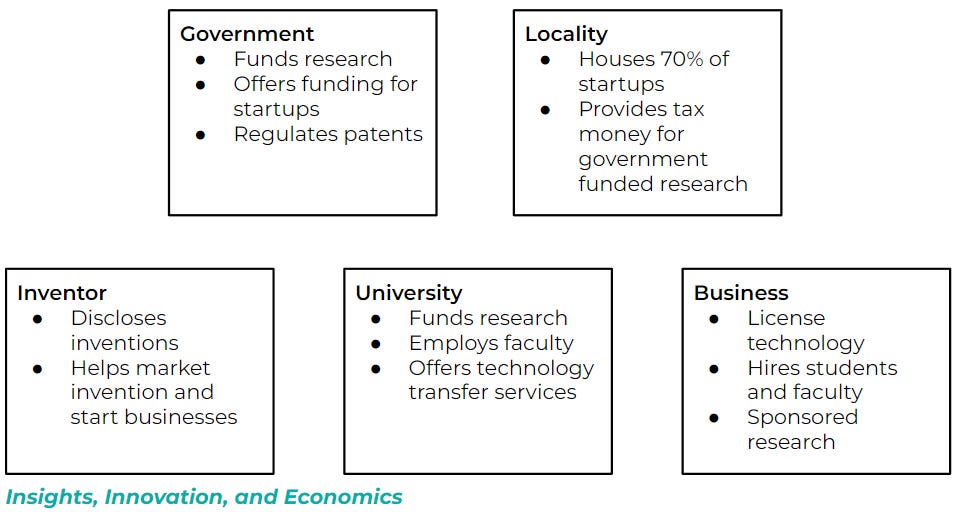 Thesis: Universities are an effective measure of intellectual property development, yet the current structure of technology transfer prevents many important innovations from exiting the university setting into the real world.