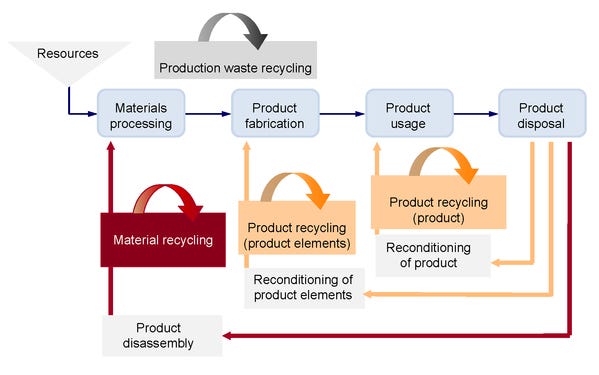Here’s a chart from Wikipedia. As you can see, recycled elements are integral in every step of the recycling process.