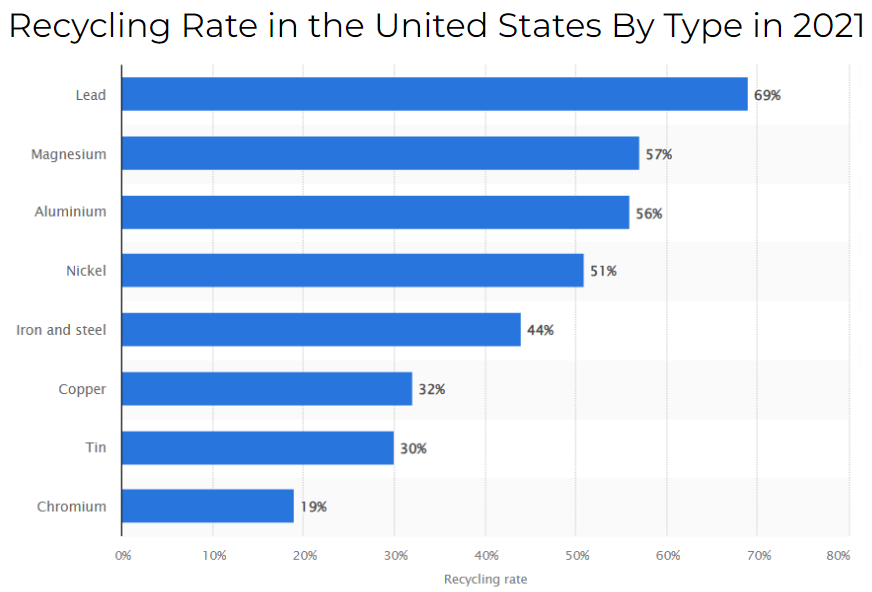 Here’s yet another data point from Statista about the recycling rates of metal.
