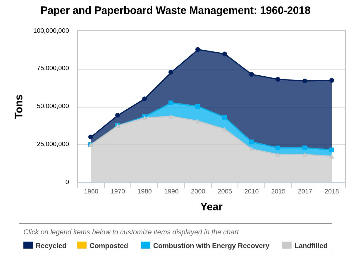 The Environmental Protection Agency cites that in 2018, paper and cardboard were the largest portion of consumer waste.